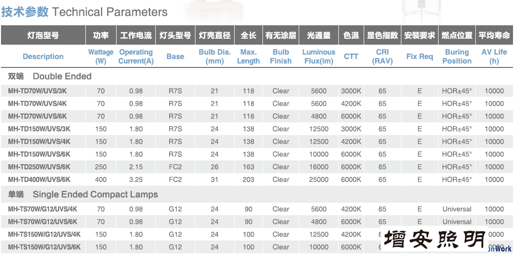 單雙端金鹵燈結(jié)構(gòu)緊湊,設(shè)計(jì)小巧,