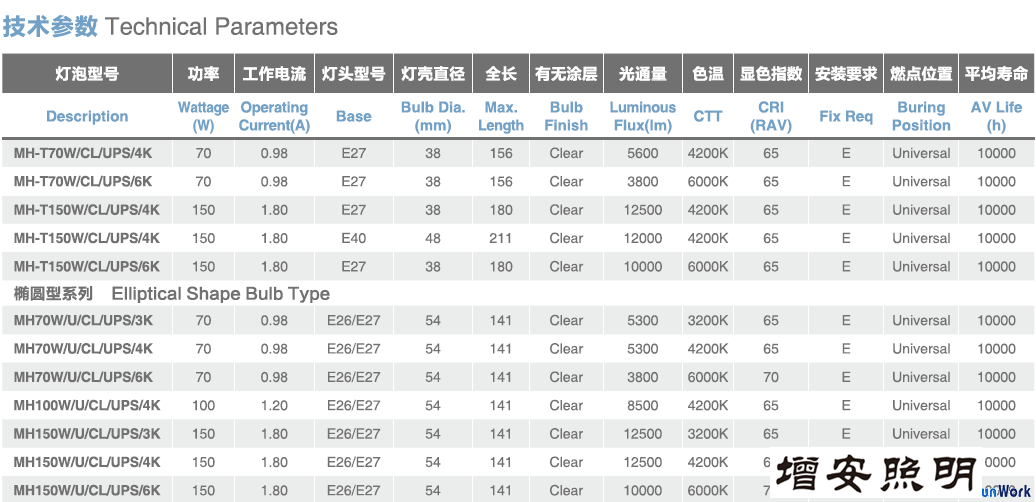 UPS的含氮雜環(huán)金鹵燈_70W/100W/150W_UPS Metal Halide Lamp|燈具廠家旭高