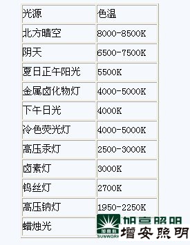 ● 下面是不同光源環(huán)境的相關(guān)色溫度。(僅供參考)