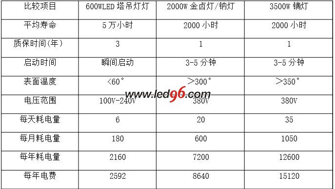 以上所述,不管是亮度還是費(fèi)用方面都充分證明了600WLED塔吊燈是可以代替2000W金鹵燈