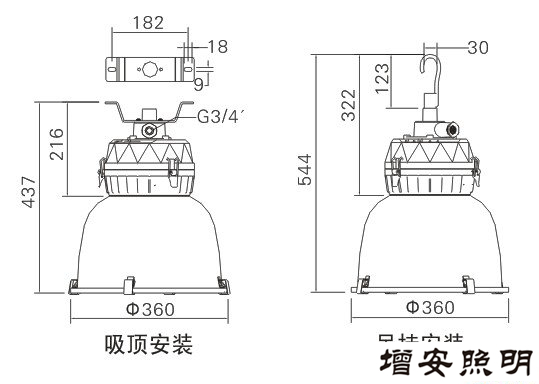 ● 吸頂、彎管、吊桿多種安裝方式。